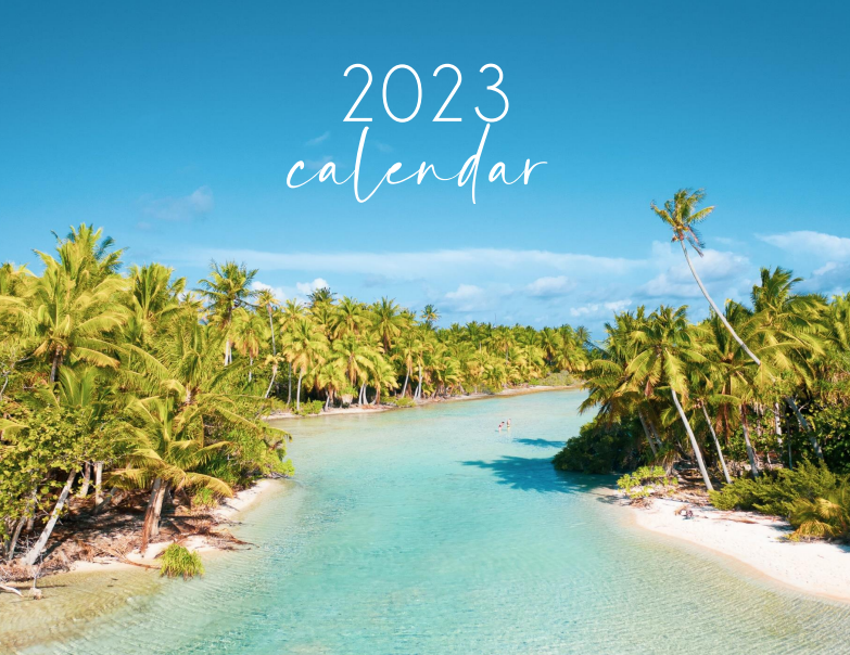 2023 Calendar. The featured photography includes shots taken on land, in the air, and underwater from around the world during her travels.